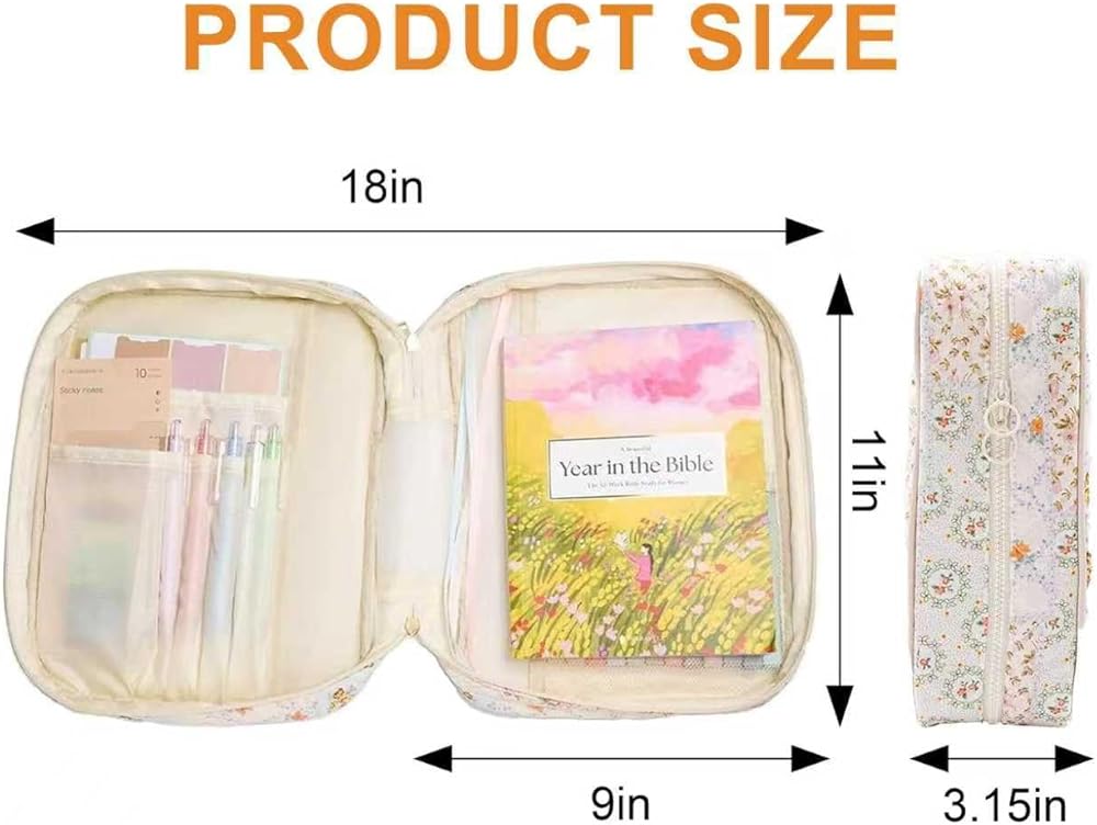 حافظة بغطاء للكتاب المقدس مقاس 11.8 * 9 بوصات للنساء، حقائب للكتاب المقدس عالية الجودة ذات سعة كبيرة، مجموعة مجلة الكتاب المقدس متعددة الجيوب مع الملحقات، حقيبة حمل الكتب من القماش القطني للنساء