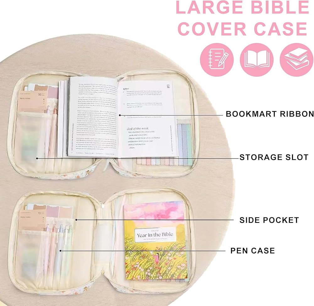 【 تصميم محمول بدون جهد 】: يتميز غطاء الكتاب المقدس هذا بتصميم محمول بمقبض متين وسهل، بالإضافة إلى سحاب معدني عالي الجودة لمتانة طويلة الأمد. يمكنك إحضارها معك بسهولة إلى أي مكان. سواء كنت تذهب إلى الكنيسة، أو المكتبة، أو غرفة الدراسة لدراسة الكتاب المقدس، أو العبادة والحج، فهو رفيق مناسب.