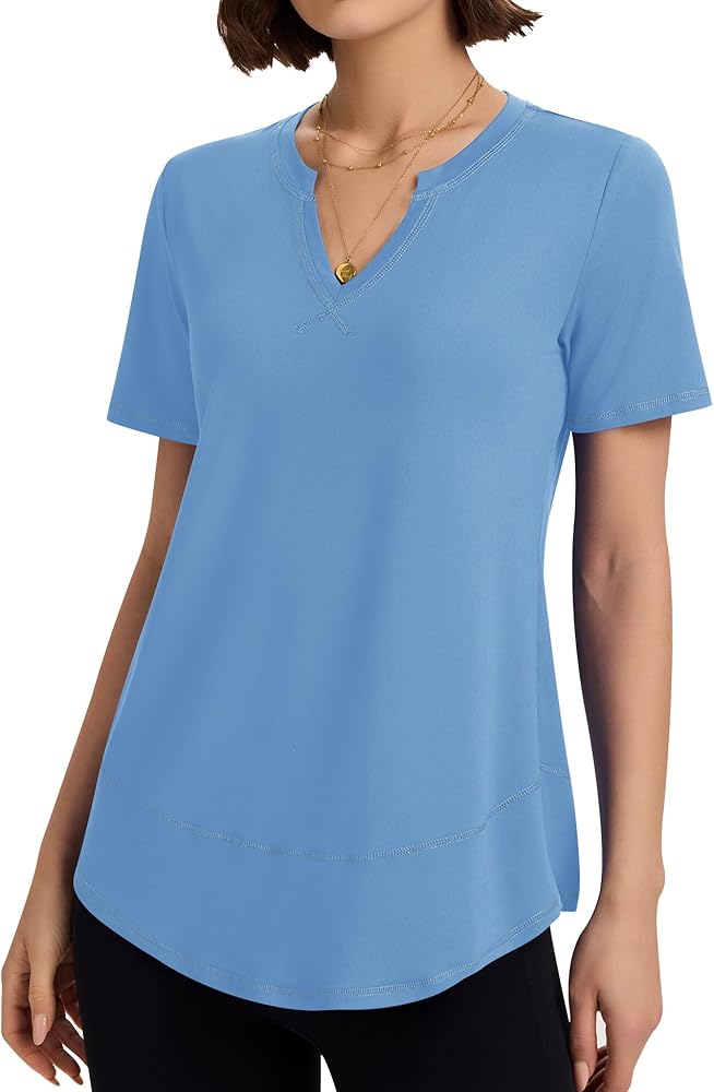 قمصان للتمرين من TCOT للنساء برقبة على شكل حرف V وأكمام قصيرة للمشي لمسافات طويلة، قمصان يوجا، قميص رياضي للتمرين in Kuwait