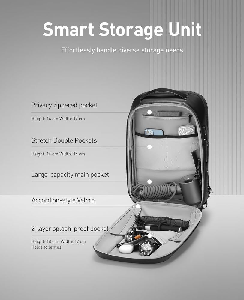 [منافذ USB مزدوجة وتنظيم أقصى] قم بتشغيل رحلتك دون أي متاعب! مزود بمنفذي شحن USB-A وUSB-C، ويمكنك بسهولة توصيل بنك الطاقة (الكابل مضمن) لشحن أجهزتك أثناء التنقل. في الداخل، تحافظ حجرة الكمبيوتر المحمول المخصصة والمبطنة وحافظة الكمبيوتر اللوحي المنفصلة على أمان التكنولوجيا الخاصة بك وسهولة الوصول إليها. تضمن الحجرة الرئيسية الواسعة والجيوب المتعددة أن يكون لكل شيء - بدءًا من ملفات العمل إلى الضروريات اليومية - مكانه المثالي، بحيث لا يتشابك أي شيء أو يضيع.