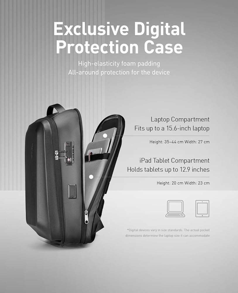 [قوة صلابة وأمان مضاد للسرقة] تم تصميم حقيبة الظهر ذات الغلاف الصلب للرجال لتكون بمثابة قبو شخصي لضرورياتك. يوفر التصميم الخارجي المتين والمقاوم للخدش جنبًا إلى جنب مع القفل المعتمد من TSA حماية من الدرجة الأولى لجهاز الكمبيوتر المحمول مقاس 15.6 بوصة والأشياء الثمينة أثناء السفر أو التنقل اليومي أو في الحرم الجامعي المزدحم. يضيف الجيب الخلفي الخفي المضاد للسرقة طبقة ذكية من الأمان لراحة البال الكاملة.
