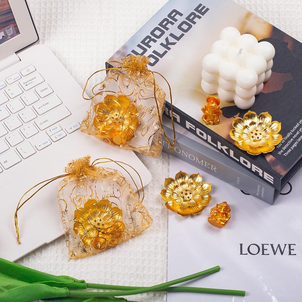 1. Complete Diwali Bulk Gift Set: This all-in-one Diwali and pooja gift bundle includes 30 lotus incense holders, 30 mini golden Ganesha ornaments, 30 elegant organza bags, and 30 thank-you cards—perfect for distributing meaningful blessings at festivals, gatherings, or cultural events.