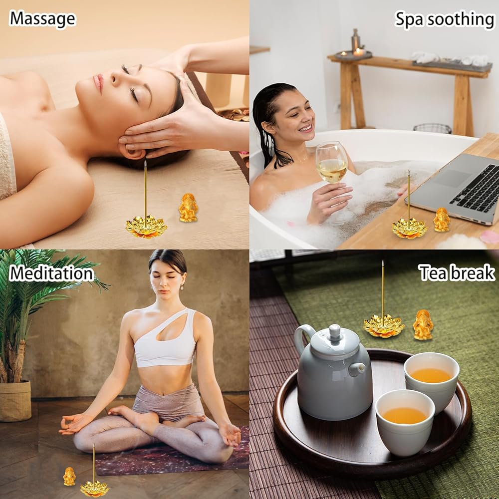 3. Elegant Lotus Incense Holders for Pooja: The lotus incense holders offer a refined touch to any pooja setting. Their compact size and gold-toned design make them suitable for daily rituals, meditation spaces, festival décor, or return gifts for family and friends.