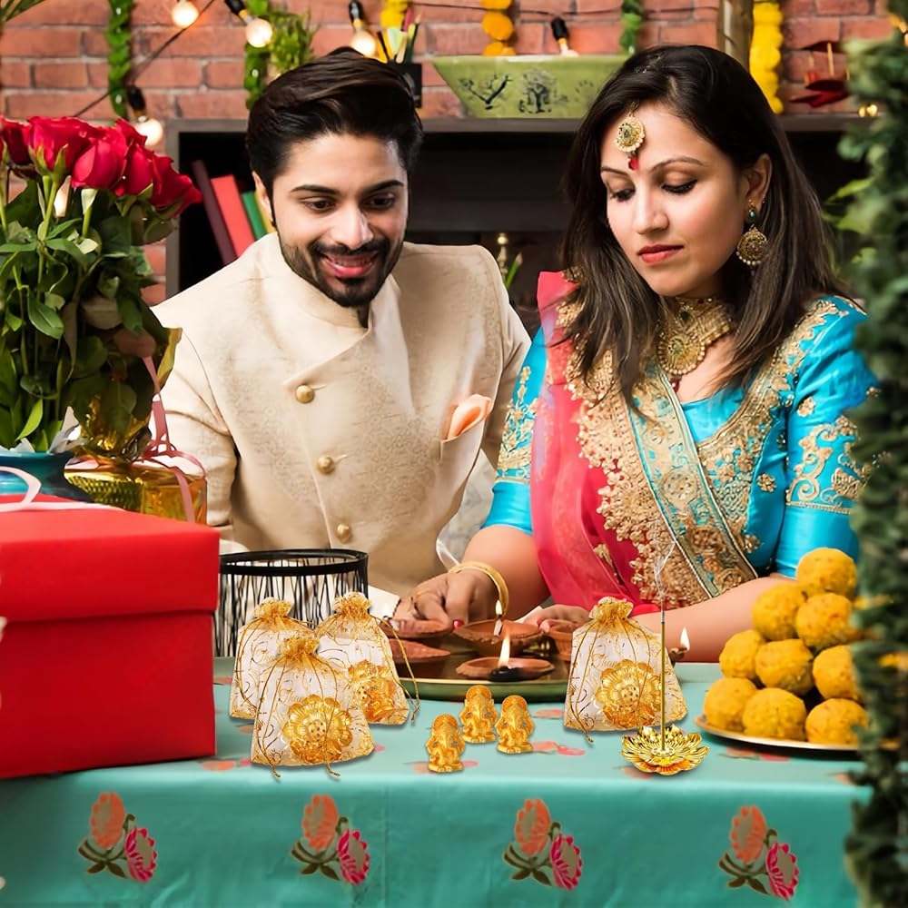 4. Ready-to-Gift Packaging with Organza Bags: Each set comes with matching organza gift bags and thank-you cards, making preparation easy and elevating your presentation. Simply place the Ganesha idol and lotus holder inside the bag—ideal for community events, temples, weddings, school functions, and festival gifting.