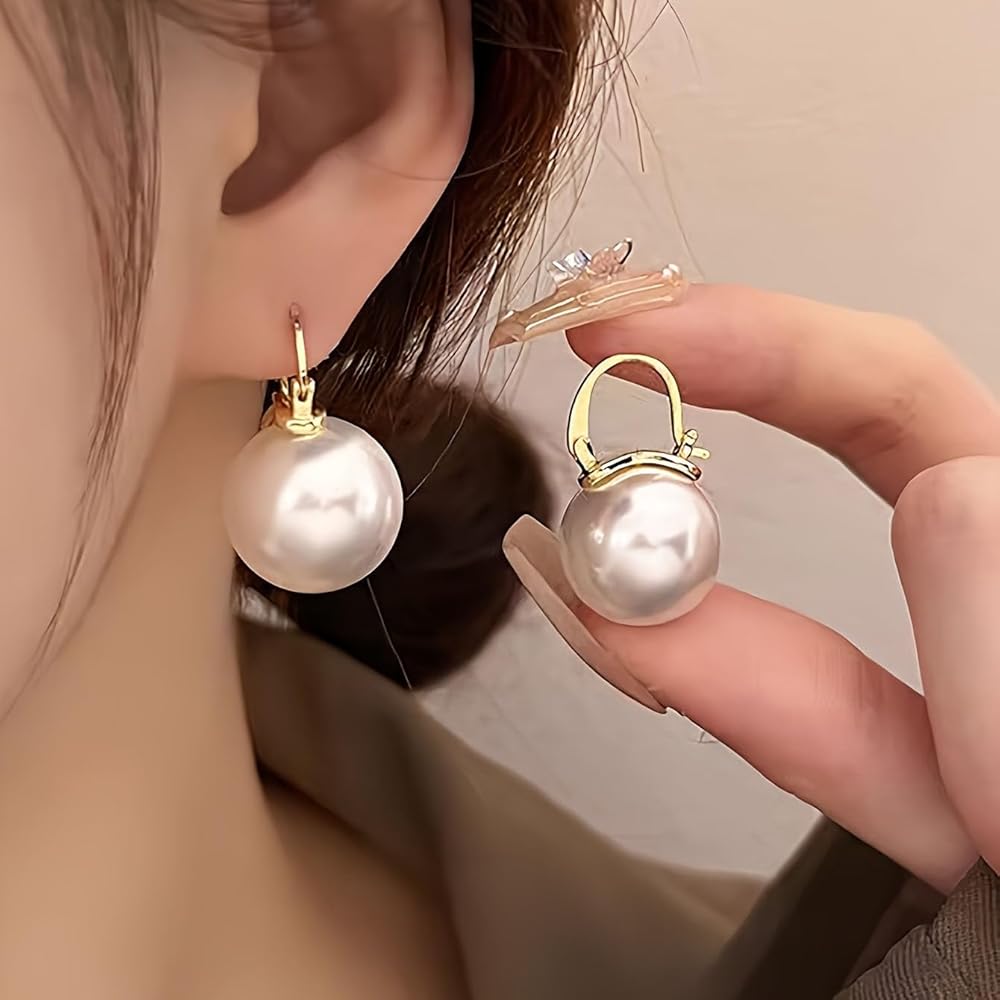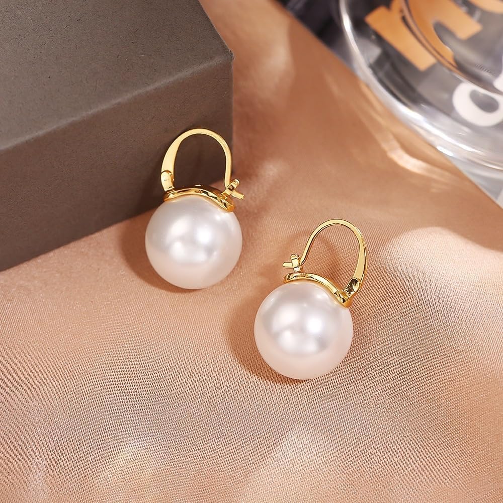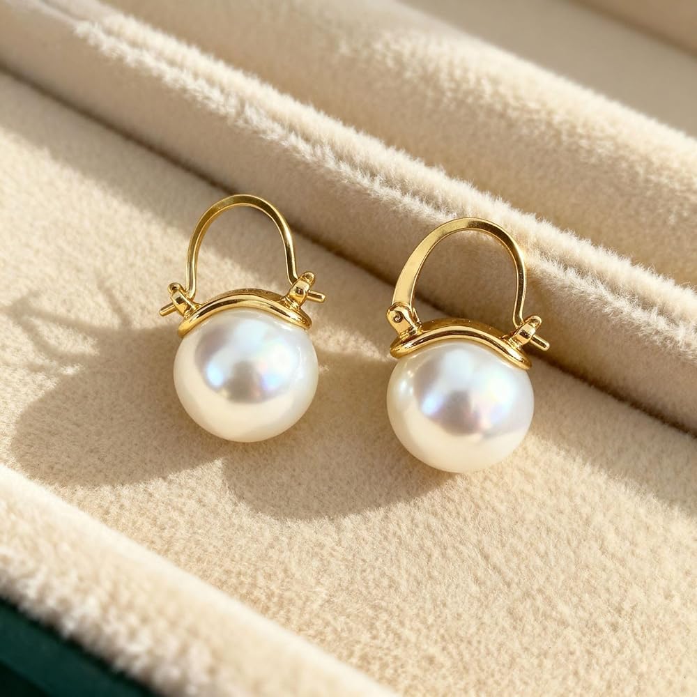 تصميم أنيق: أقراط متدلية كلاسيكية من اللؤلؤ الذهبي تتميز بلآلئ AAA بيضاء لامعة معلقة من حلقات ذهبية مصقولة للحصول على مظهر متطور لا يتأثر بمرور الزمن.