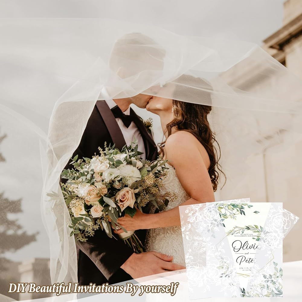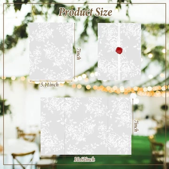 Easy DIY Your Invitations: Simply slide your 5x7 card into the wedding invitation sleeves. No cutting or folding required; Get creative by incorporating stickers, wax seals, or ribbon decorations according to your own ideas, making your invitations uniquely captivating