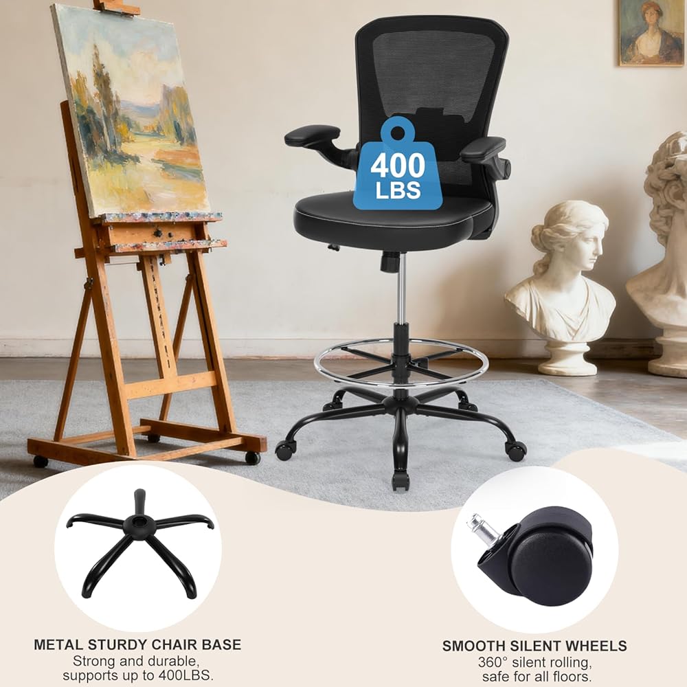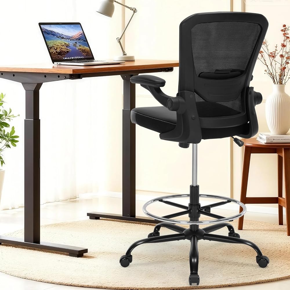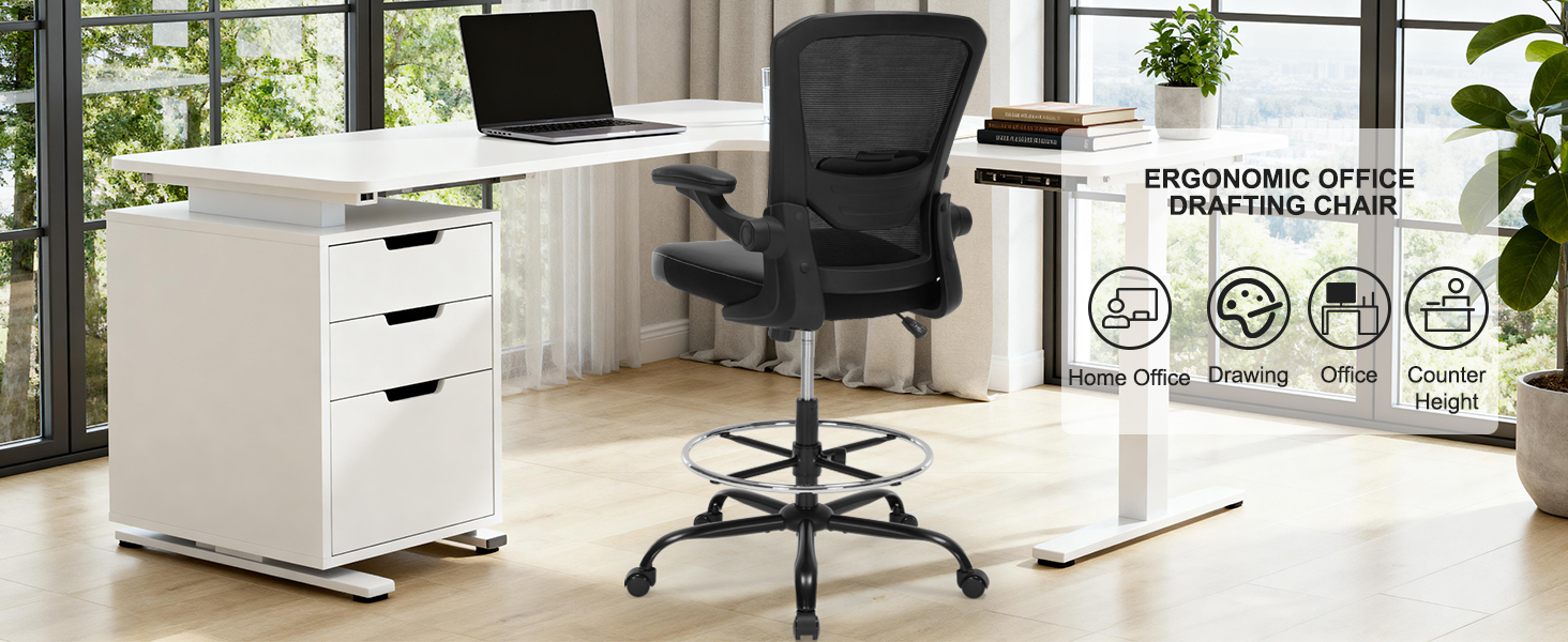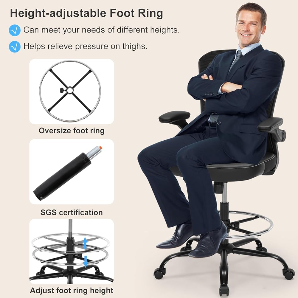 【كرسي رسم قابل للتعديل】مصمم للمكاتب الدائمة وطاولات الرسم، ويمكن تعديل ارتفاع المقعد من 23 بوصة إلى 30 بوصة ليتناسب مع احتياجات محطة العمل المختلفة. توفر حلقة القدم إمكانية تعديل الارتفاع بمقدار 4 بوصات لدعم الساق المستقر، بينما توفر مساند الذراعين القابلة للطي بزاوية 90 درجة راحة الذراع عند الحاجة وتسمح بدفع مقعد المكتب بسهولة تحت المكتب لتوفير المساحة.