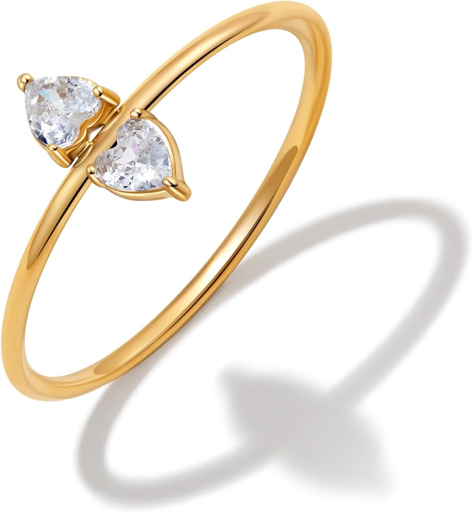 Elevate your jewelry collection with these exquisite stackable rings for women. These ultra-thin 1mm bands feature brilliant mini CZ stones in three captivating styles—graceful pear cut, sleek marquise cut, and romantic heart duo. Crafted from gold plated stainless steel, these statement rings offer both elegance and durability. Their subtle sparkle makes them perfect for everyday wear, whether worn individually or layered for added dimension. Despite their delicate appearance, these rings are built to last—waterproof, tarnish-resistant, and designed to maintain their shape through daily activities. The slim profile sits comfortably on your finger while resisting bending and damage. Available in sizes 6-8, these versatile rings arrive in premium signature gift packaging, making them an ideal present for any special occasion. Add a touch of refined glamour to your style with these timeless, stackable treasures.