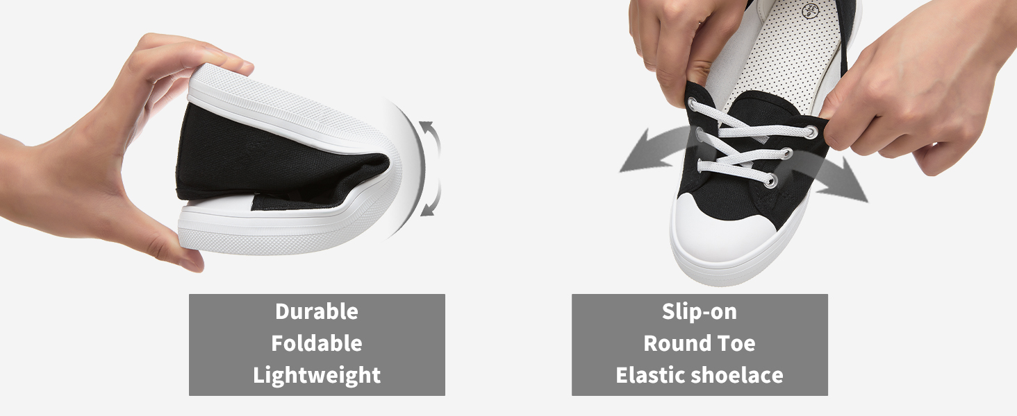 Women's slip-on shoes feature elastic laces and a slip-on design. You don't need to tie laces—these women's canvas sneakers are super easy to put on and take off. Perfect for busy mornings or quick outings