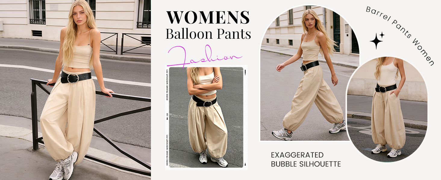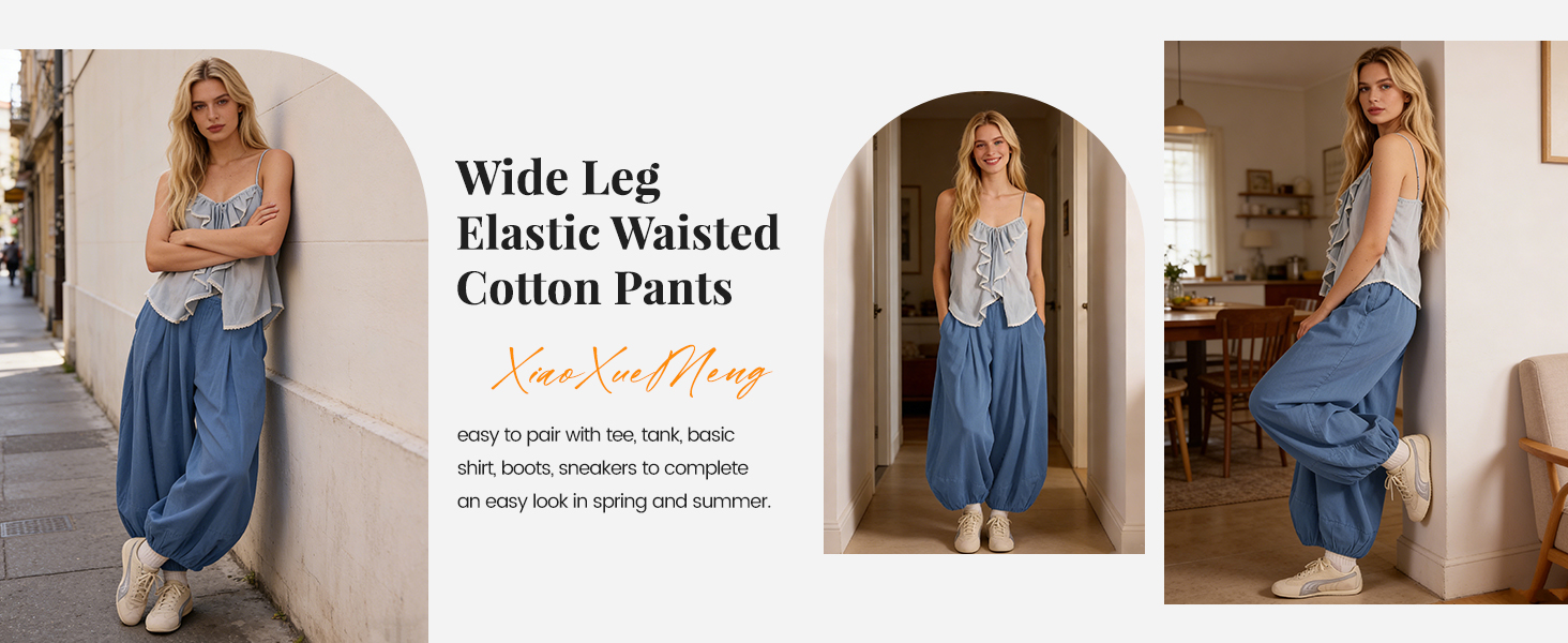- المزايا: سراويل نسائية فضفاضة، خصر مرن عالي، جيبان جانبيان، طراز سهل الارتداء، طول قصير، صورة ظلية فقاعية مبالغ فيها