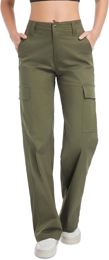 Women's Cargo Pants - Baggy Relaxed Fit, Cotton, Hiking & Work Pants with 6 Pockets