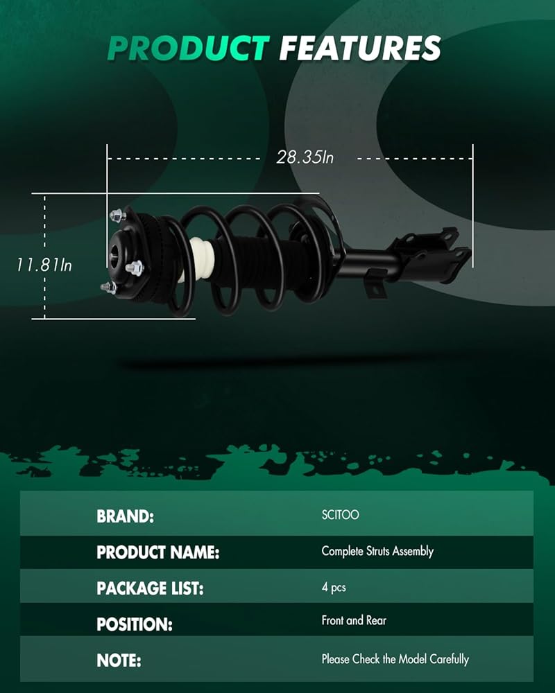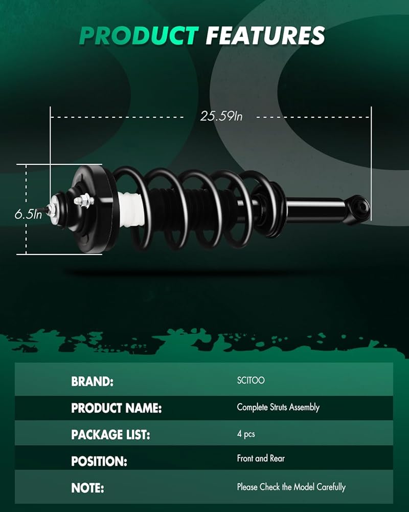 • [تركيب سهل] - تشتمل مجموعة الدعامة الكاملة من SCITOO على الدعامة، والزنبرك اللولبي، والتركيب، والمحمل، والممتص الصدمات، والحذاء، والعازل، وهذا يسمح بالصيانة السريعة باستخدام الأدوات الأساسية فقط. يوصى بالتركيب الاحترافي لضمان الأداء الأمثل