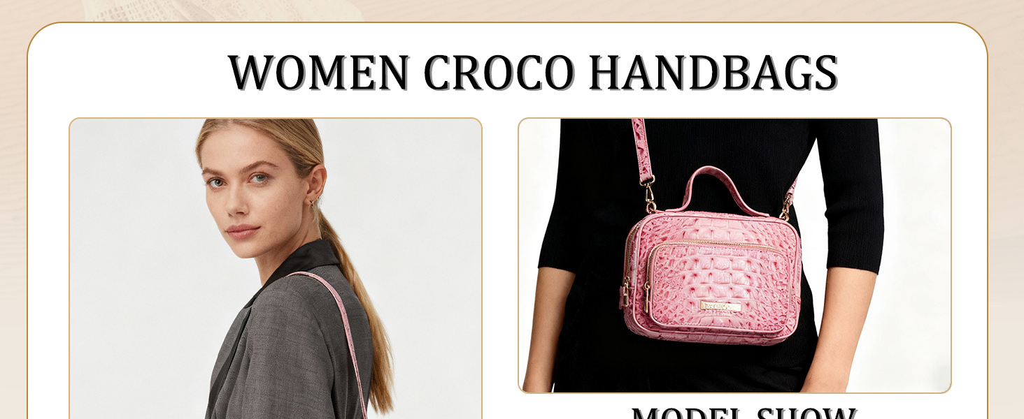 تصميم مربع أنيق من كروكو: جلد كروكو مستوحى من الطراز العتيق مع شكل صندوق مربع منظم. جيبان رئيسيان بسحاب لتأمين مقتنياتك، بينما تضيف الصورة الظلية الأنيقة الرقي إلى الملابس الكاجوال أو المواعدة أو المساء.