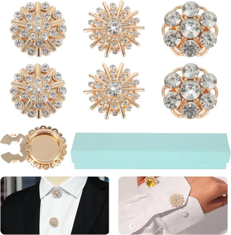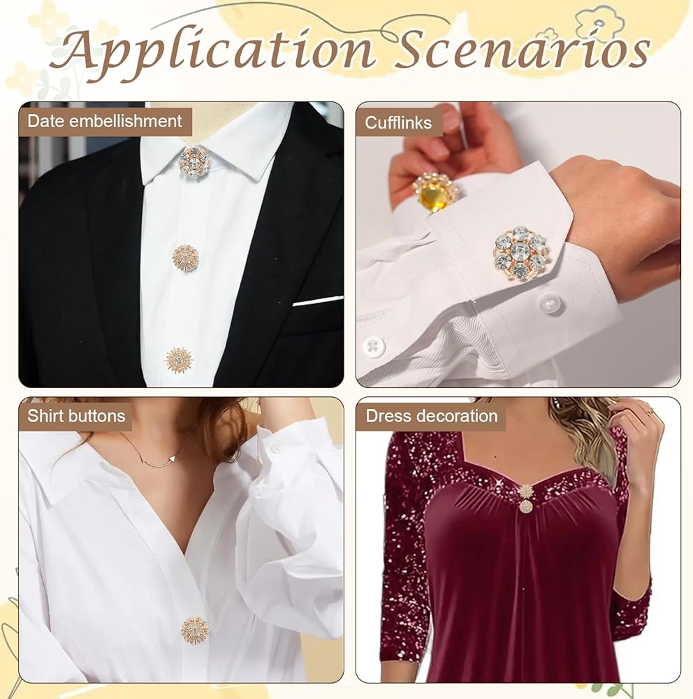 أغطية الأزرار: أزرار أكمام بأزرار من حجر الراين، يمكن ارتداؤها كإكسسوار أنيق جميل على أي قميص، مثالية لاجتماعات العمل والعشاء والتنقل اليومي والمناسبات الأخرى.