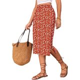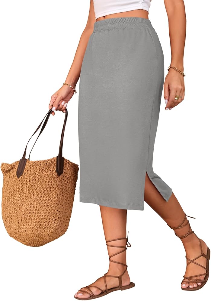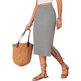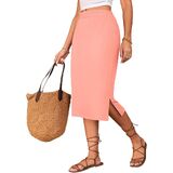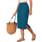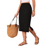 Midi Skirts for Women Summer Elastic High Waisted Side Slit Long Skirts