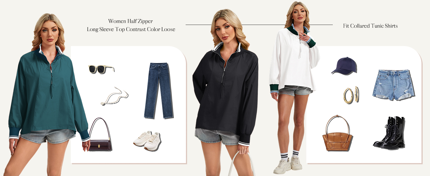 • مطابقة: بلوزة نسائية كبيرة الحجم بأكمام طويلة بنصف سحاب يسهل تنسيقها مع السراويل الضيقة والتنانير والجينز والسراويل القصيرة لليوجا للحصول على مظهر أنيق للملابس الرياضية. هذا التونيك النسائي المتأرجح، قميص فضفاض ذو رقبة متباينة بنصف سحاب مع سترة أو معطف في الخريف والربيع والشتاء، أو يمكن ارتداؤه بمفرده في الصيف.