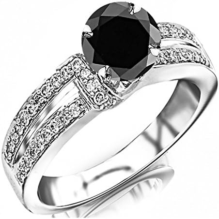 0.85 Carat t.w 14K White Gold Twisting Split Shank Contemporary Diamond Engagement Ring w/ a 0.5 Carat Round Cut Black Diamond Heirloom Quality