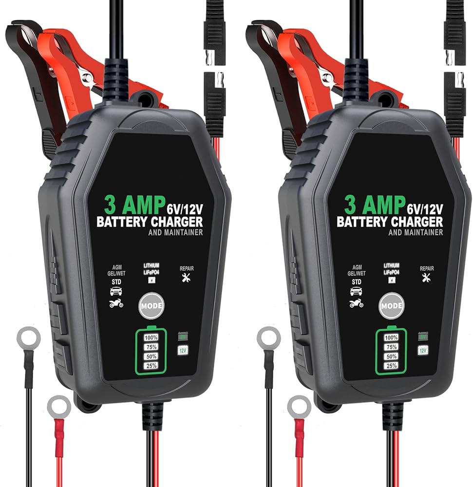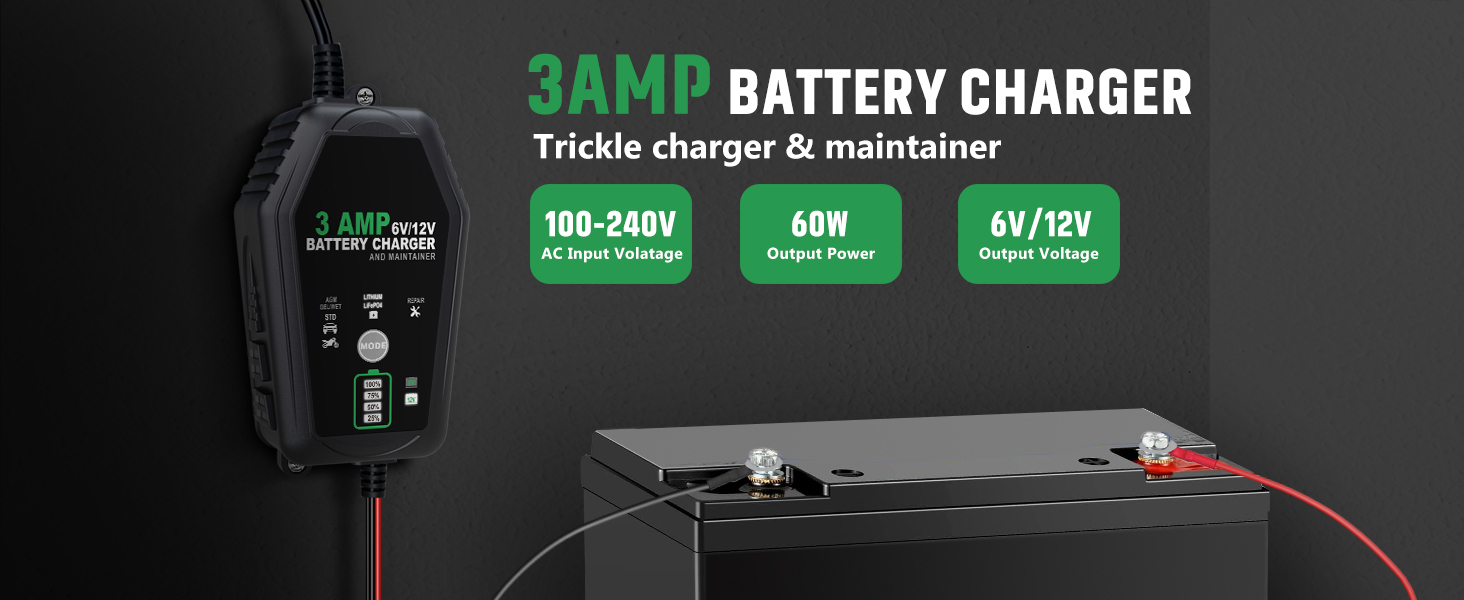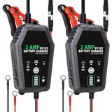 [شحن آمن] - يوفر شاحن البطارية 6V/12V 3A الخاص بنا شحنًا كاملاً لبطارية سيارتك أو سيارات الدفع الرباعي أو الشاحنة قبل التبديل إلى الوضع العائم للحفاظ على مستويات الجهد المناسبة دون الشحن الزائد أو إتلاف البطارية. سوف يبقي بطاريتك مشحونة بالكامل حتى تكون جاهزة للعمل عندما تكون كذلك.