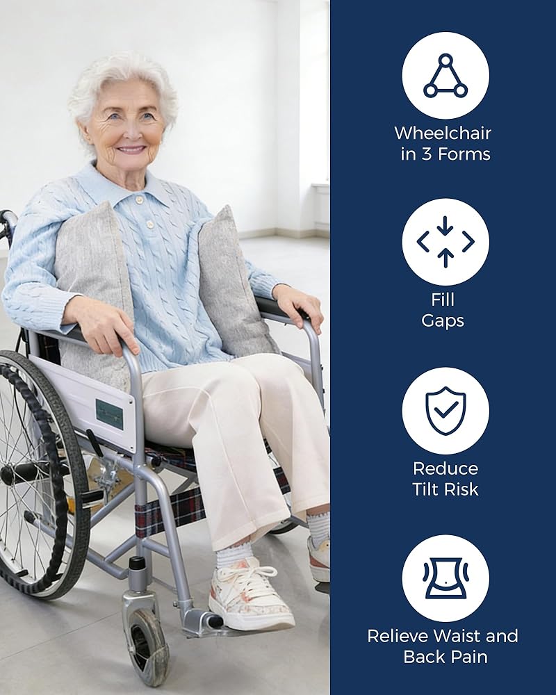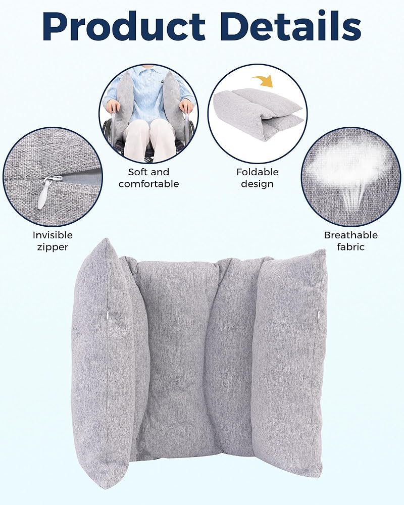 وسادة دعم جانبية للكرسي المتحرك لدعم الجانب الخلفي للكرسي المتحرك لتخفيف الضغط، وسادة إسفينية لتحسين وضعية الجلوس، ومساعدة كبار السن، وإكسسوارات الكراسي المتحركة، وسائد جانبية للكراسي.
