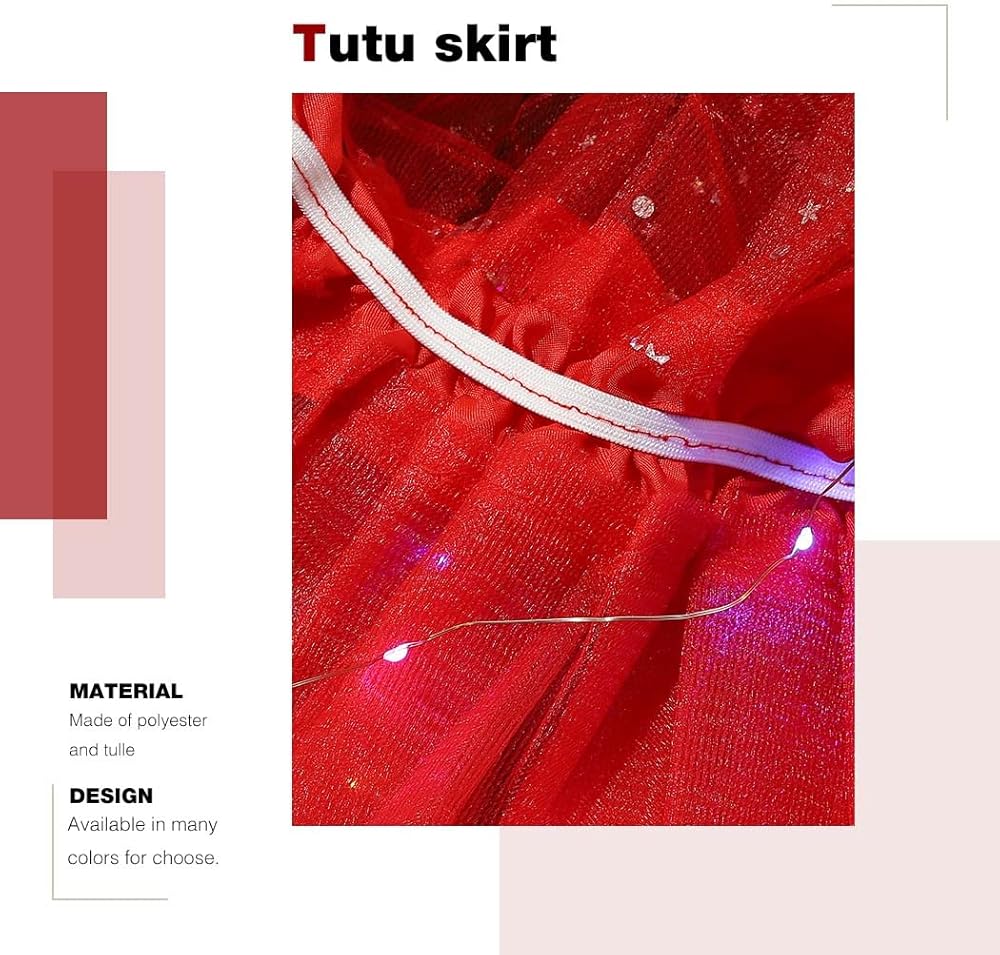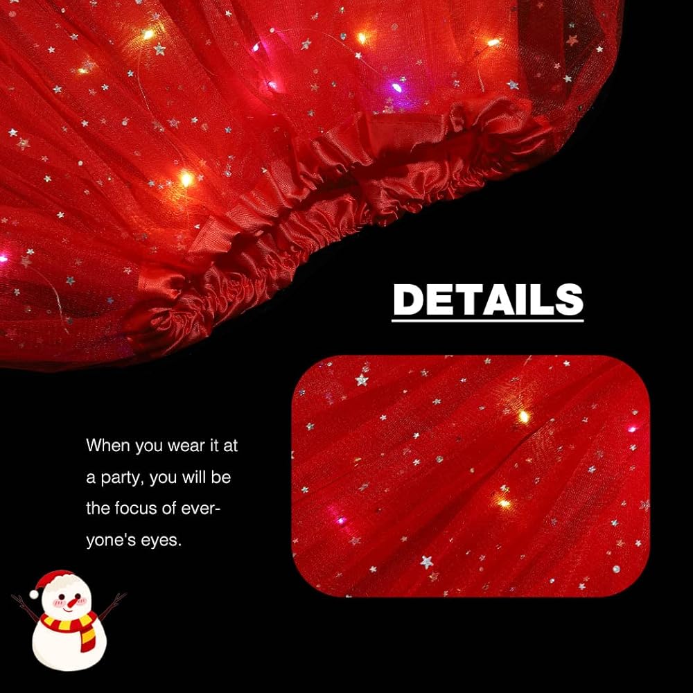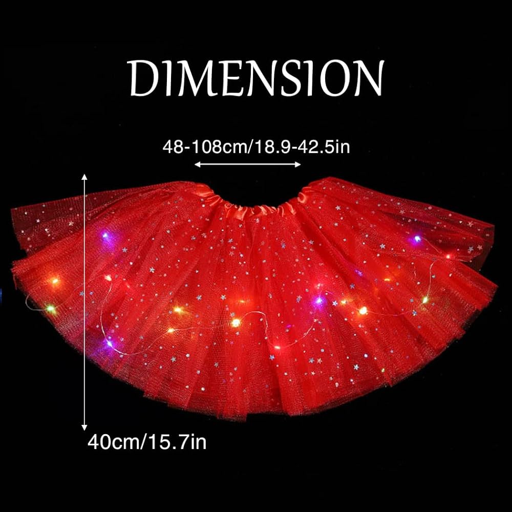 يبلغ طول تنورة الباليه LED حوالي 40 سم، ويمكن أن يمتد خصر هذه التنورة إلى 110 سم. تصميم الخصر المرن مناسب لكل النساء والفتيات.