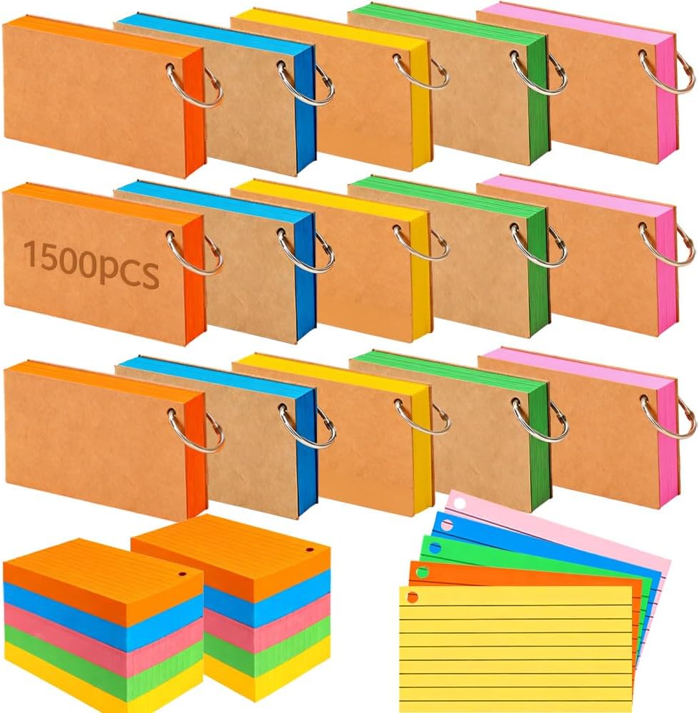 【بطاقات فهرس مع حلقات】 سوف تحصل على 1500 بطاقة فهرس بيضاء و15 حلقة فهرس (إجمالي 15 عبوة، 100 بطاقة في كل عبوة).