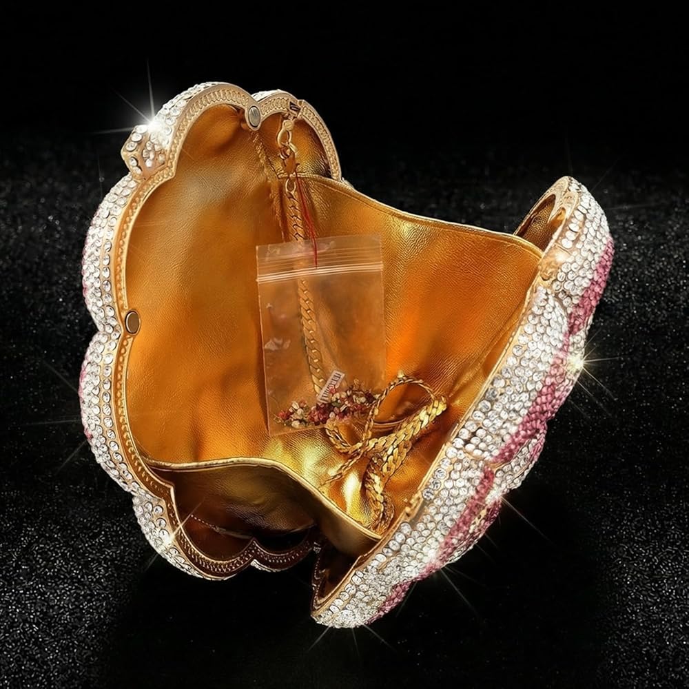 صناعة يدوية: كل حقيبة سهرة مصنوعة يدوياً. بشكل عام، يوجد حوالي 3000 حجر الراين في حقيبة السهرة. كل حجر الراين مرصع بواسطة عامل بمادة غراء خاصة. تستغرق العملية برمتها حوالي 30 ساعة عمل. يمكن أن تضمن العملية الطويلة قيام العمال بإنشاء عدد كبير من حقائب السهرة ذات الأنماط والألوان الملونة المختلفة، وهو عمل فني يصعب على الآلات إنشاءه.