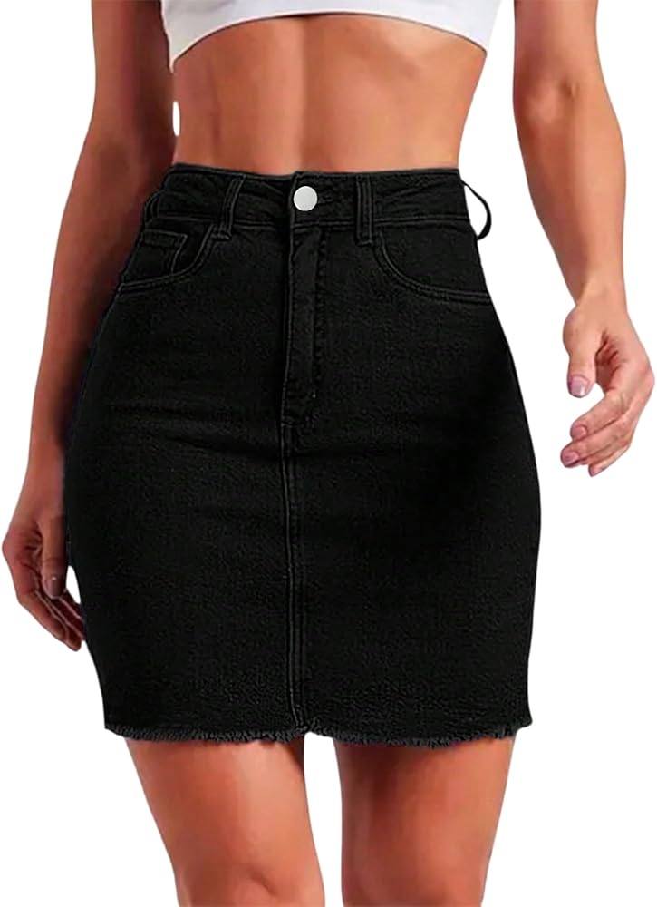 • Features: The jean skirt features raw hem detailing, high waist design and mini length
