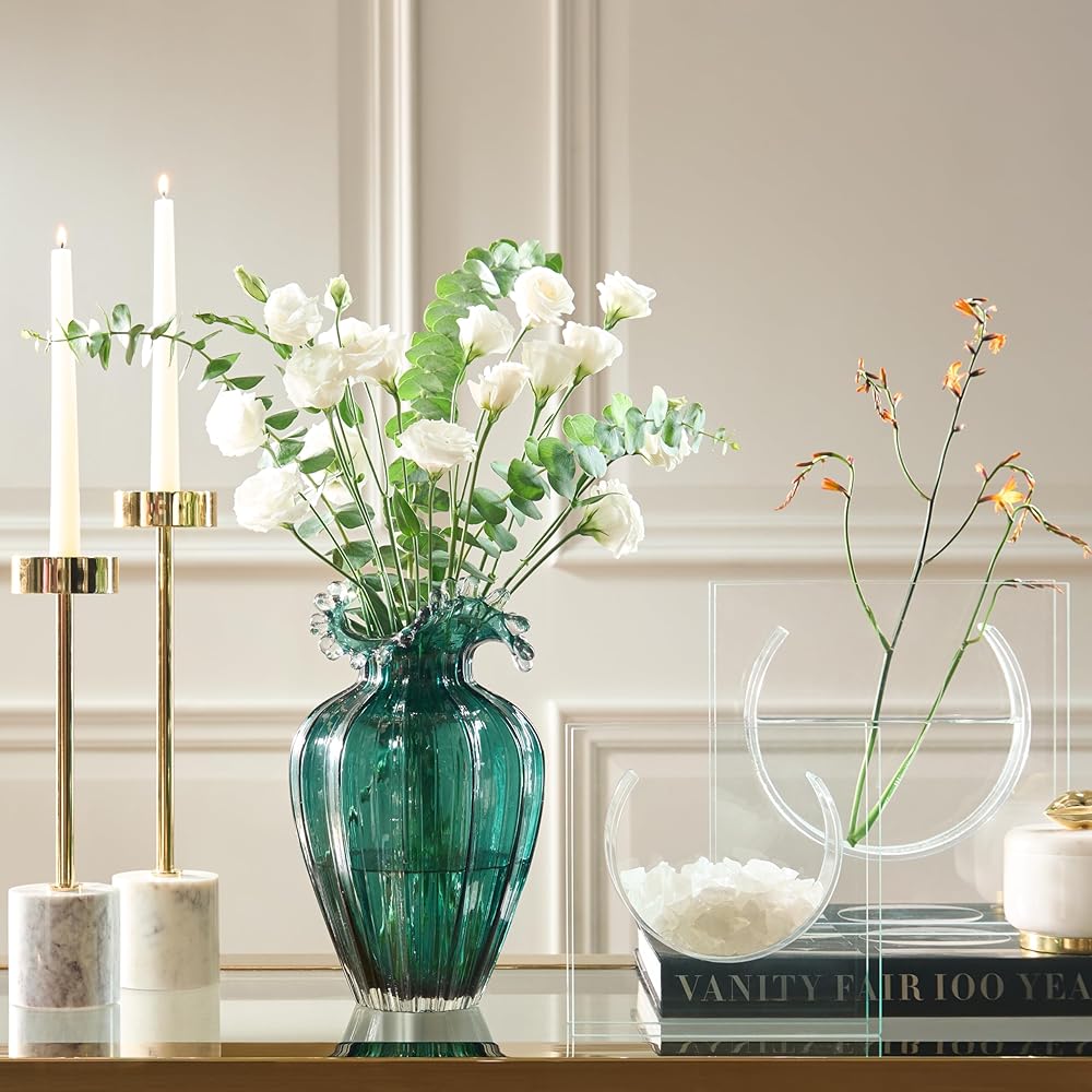 مادة جيدة: جسم المزهرية مصنوع من مواد عالية الجودة، السطح اللامع والأملس، تصميم فني أنيق، يبدو أكثر ملمسًا. سطح القطع لفم الزجاجة أملس، والجزء السفلي من الزجاجة مسطح، وليس من السهل تفريغها لضمان الثبات.
