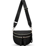 حقائب بوم للنساء، حقيبة كروس من النايلون، حقيبة كبيرة بلون نقي، حقيبة فاني بجيوب مزدوجة كبيرة الحجم وحزام مترهل (أسود) in Kuwait