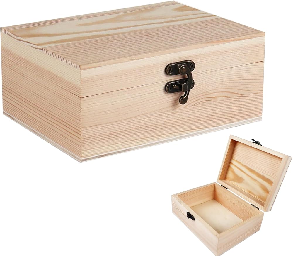 Small Unfinished Wood Box with Lid 1 Pack - 6.69'' x 5.12'' x 2.95'' Unpainted Pine Wooden Box for Crafts, Jewelry, DIY Painting, Gift Packaging - Lightweight and Warp-Resistant