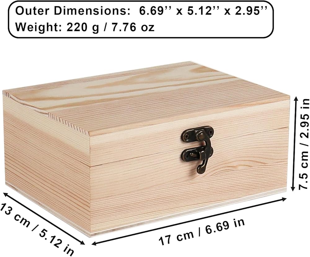 [ Compact & Practical Size ]: Outer size: 6.69" x 5.12" x 2.95". Inner size: 5.98" x 4.45" x 2.92". Weighs only 7.76 oz (220 g). A perfect small box for crafts, storage, and gift use without taking up much space.