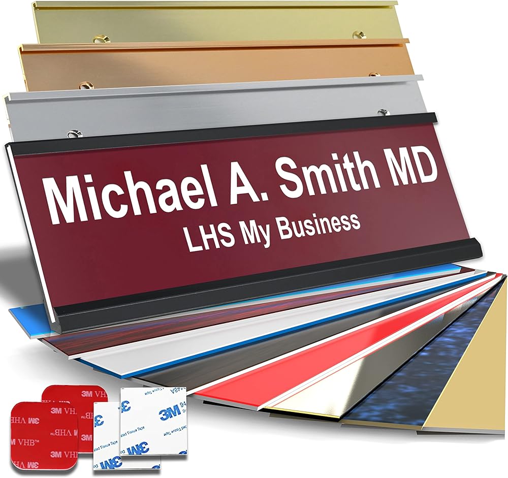 لوحة اسم مخصصة مع اختيار التركيب للجدران والأبواب وحاملات المكاتب والمقصورات والتعليق والمزيد - حروف سوداء بلاستيكية فضية مخصصة - صناعة أمريكية 2 × 8 - M1 in Kuwait