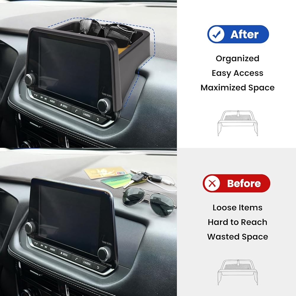 فتحة مخصصة للنظارات الشمسية: يتضمن منظم لوحة القيادة ZTGMPP حاملًا مخصصًا يحافظ على نظاراتك الشمسية آمنة وخالية من الخدوش ويسهل العثور عليها دائمًا.