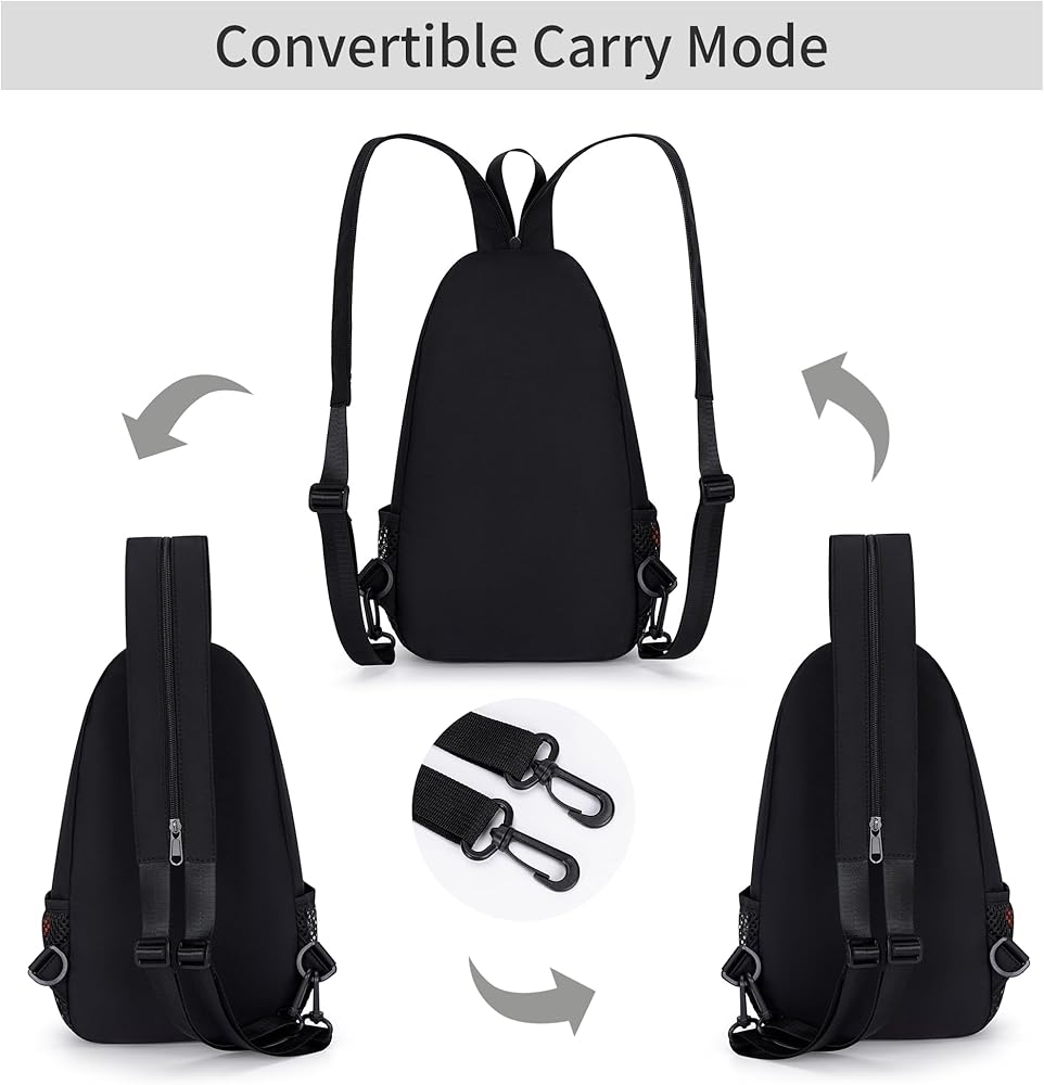 【حزام كتف قابل للعكس وقابل للتعديل】طول حزام هذه الحقيبة قابل للتعديل من 26.4 إلى 36.2 بوصة. مصمم بثلاث حلقات على شكل حرف D في الجزء السفلي، يمكن ربط حزام الكتف القابل للتعديل بالحلقة اليسرى أو اليمنى أو المزدوجة على شكل حرف D، مما يسمح لك بالتبديل بسهولة بين حقيبة الظهر وحقيبة كروس أو حقيبة الصدر أو وضع حقيبة الحمالة.