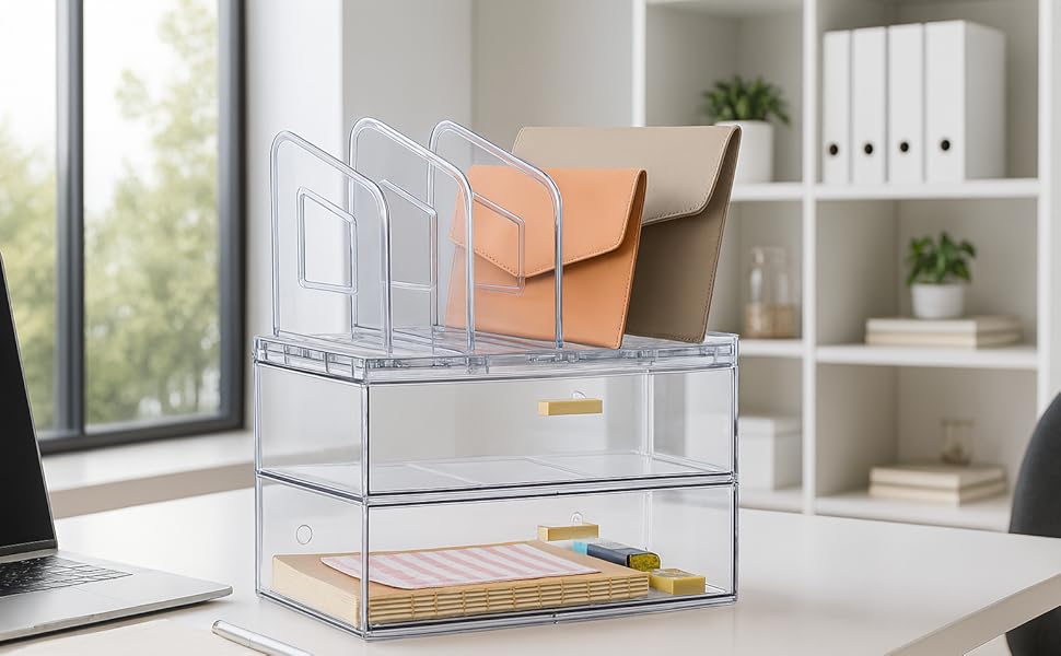منظم مكتب أكريليك مع درج، لوازم مكتبية، تخزين للتنظيم، منظم أدراج 2 قطعة مع 4 فارز ملفات، منظمات مكتبية وإكسسوارات، منظم ملفات أكريليك شفاف in Kuwait