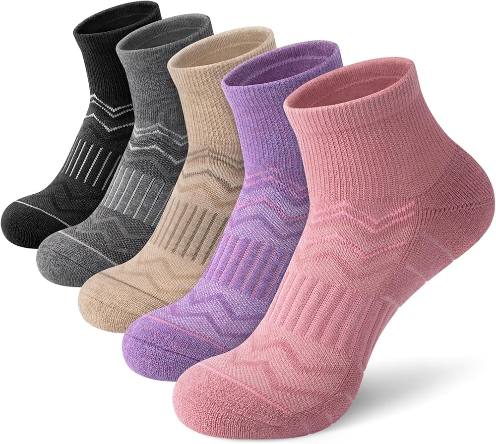 iCamter 5 أزواج من جوارب صوف ميرينو للمشي لمسافات طويلة للنساء والرجال وسادة سميكة جوارب الجري الرياضية للكاحل الربعي in Kuwait