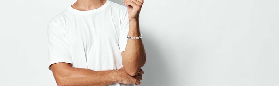 • حجم السوار: يبلغ طول السوار الرجالي حوالي 8.3 بوصة، والعرض 9 ملم. مناسبة لمعصمي الرجال. هذا السوار الرائع سيكمل أي ملابس بشكل مثالي. هدايا رجالية عصرية للابن.