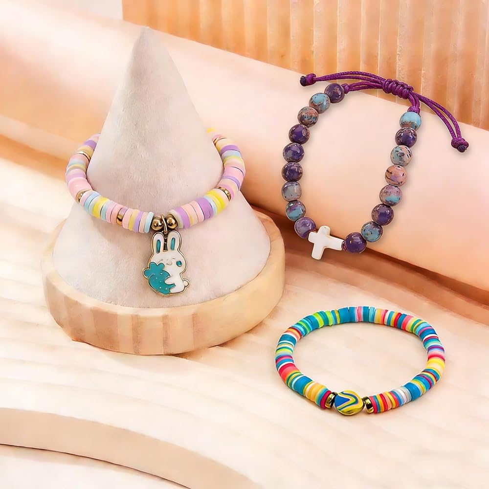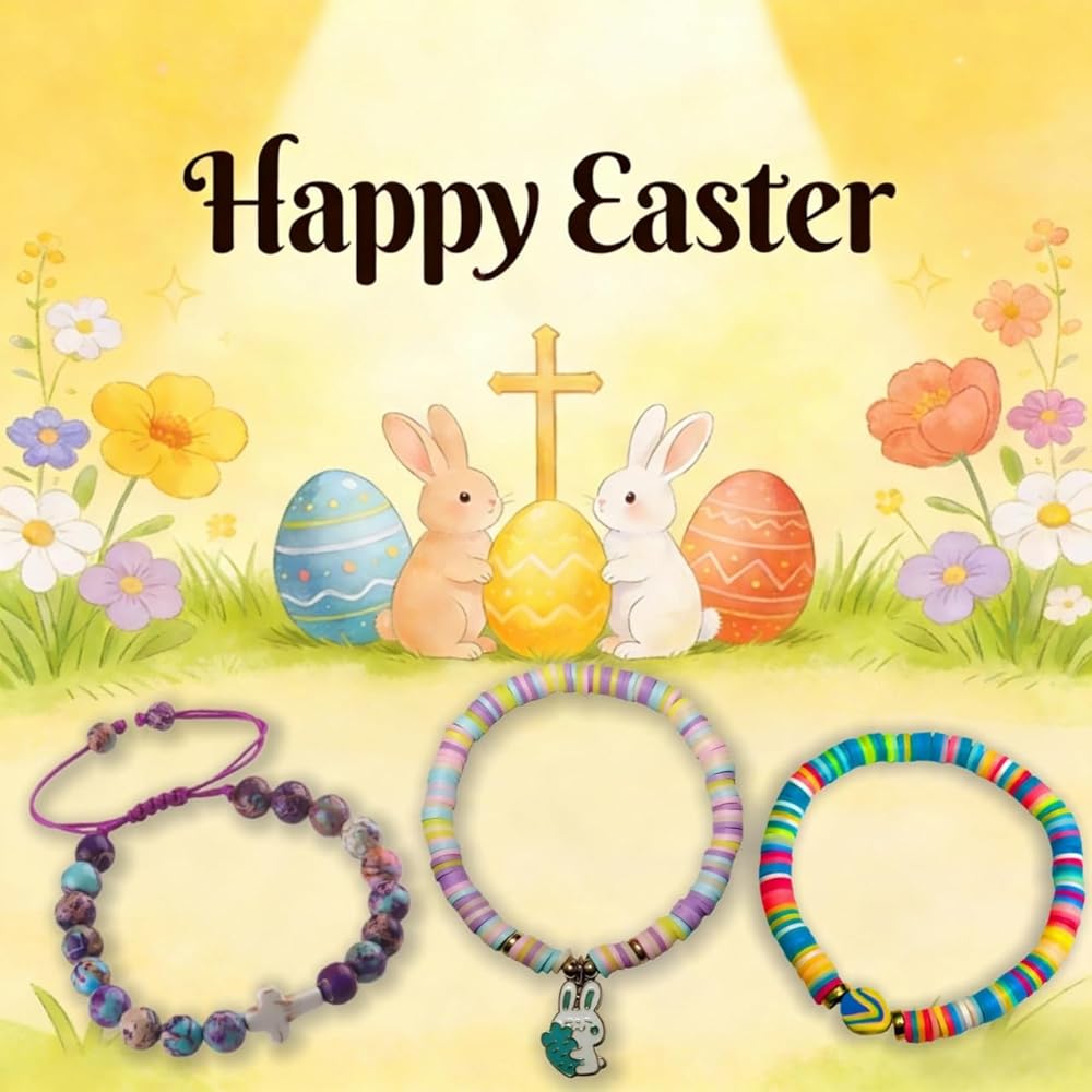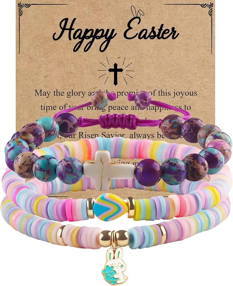 3 PCS Easter Cross Bracelet Set: Comes with two adjustable bracelets: one natural stone bracelet and two premium polymer clay bracelet, both featuring elegant cross charms. Designed to blend Easter joy with religious faith, it's a perfect combination of festivity and spirituality for Christian celebrations.