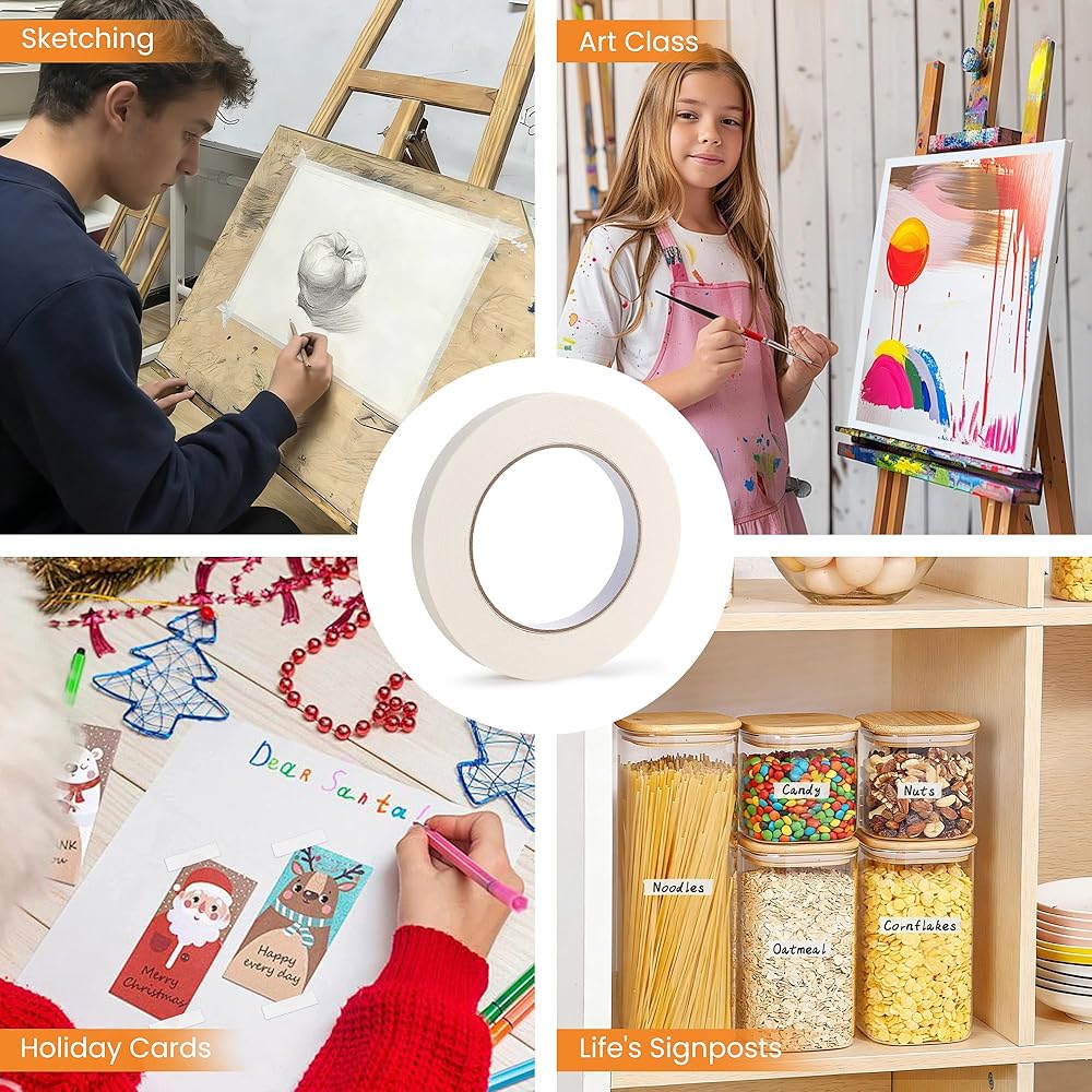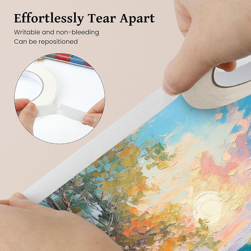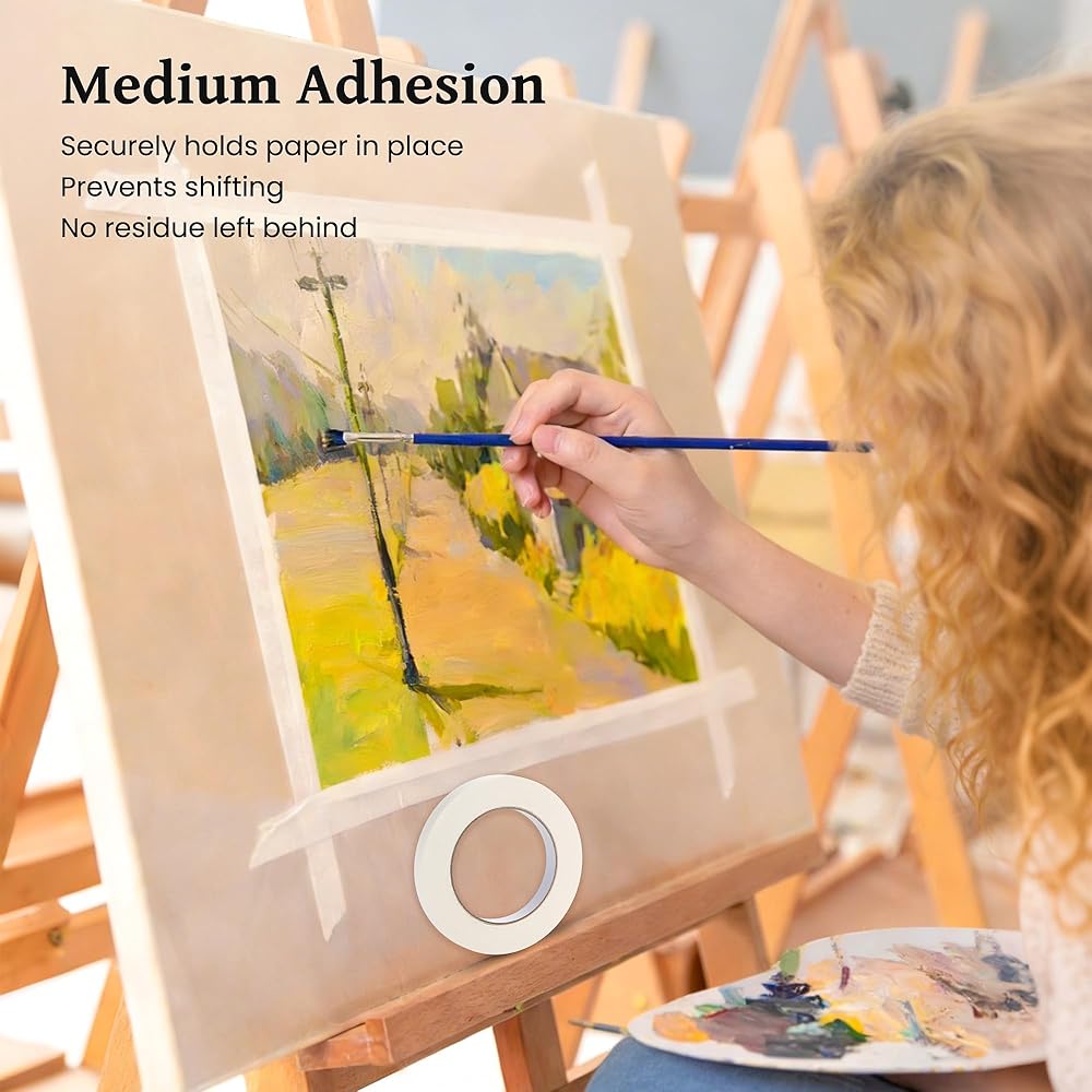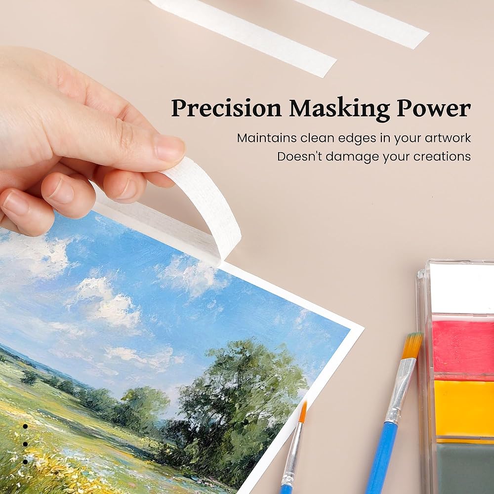 لا ينزف · مقاوم للتصبغ: شريط فني لورق الألوان المائية - لن تتسرب الأصباغ من خلال الشريط، مما يضمن حواف واضحة ونظيفة لعملك الفني. يحافظ على حواف ورق الألوان المائية نظيفة، مما يجعله ضروريًا لإنشاء لوحات مائية محسنة