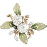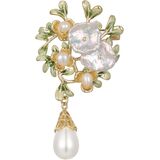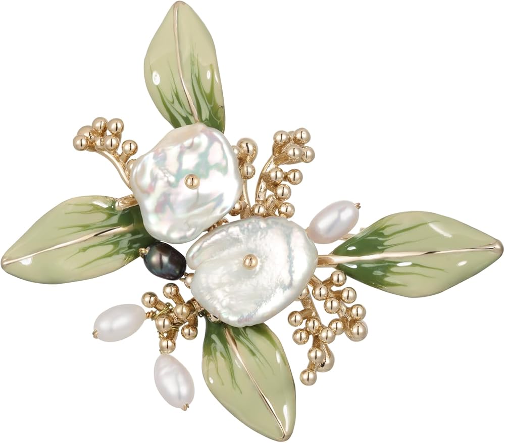 【تصميم رائع】: دبوس بروش على شكل زهرة لؤلؤية يتميز بتصميم غريب الأطوار مع أوراق المينا الخضراء الرقيقة وبتلات الزهور الذهبية المزينة باللؤلؤ الكامل وقطعة اللؤلؤ على شكل لؤلؤ. دبابيس بروش على شكل أوراق خضراء مصنوعة يدويًا بدقة، ويتميز هذا البروش بلمسات لؤلؤية رقيقة تشبه قطرات الندى، وسط أوراق مطلية بالمينا الخضراء النابضة بالحياة.