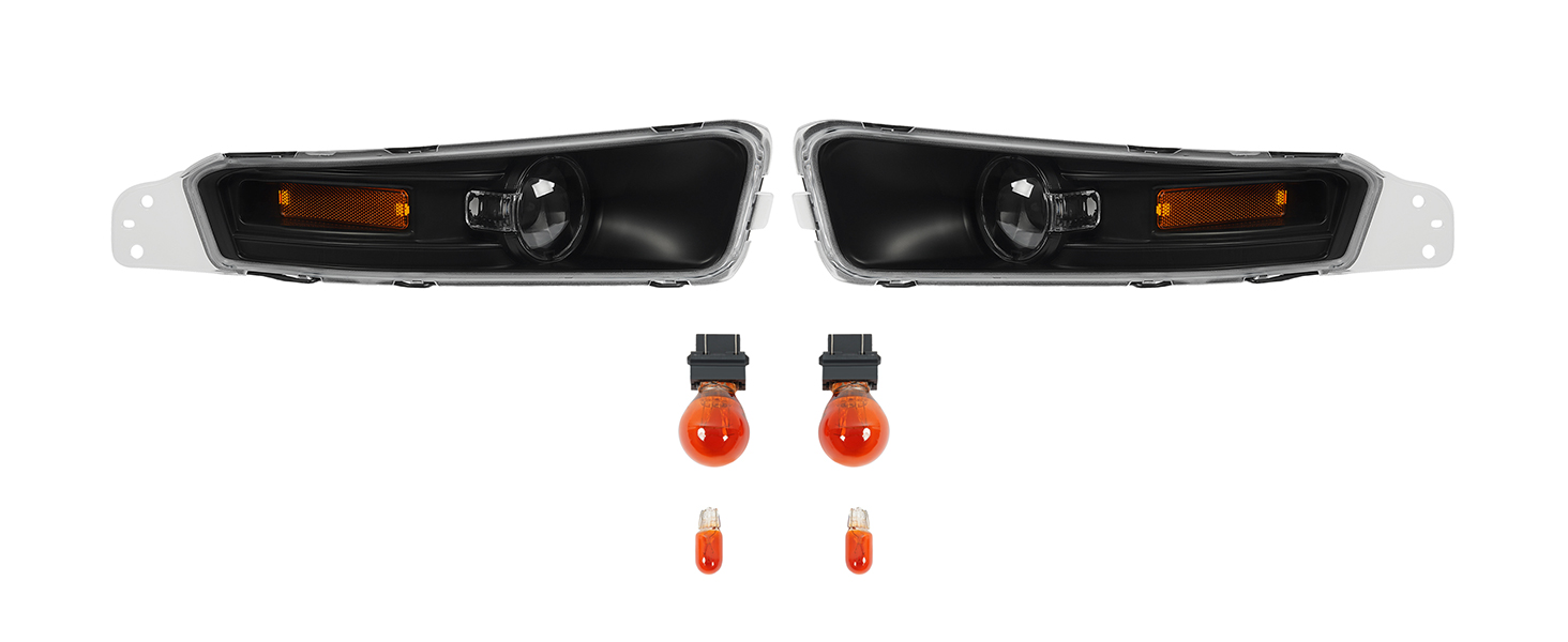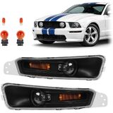 HECASA زوج بدوره أضواء الإشارة متوافق مع 2005-2009 فورد موستانج لاستبدال FO2521180 FO2520180 أضواء المصد الأمامي مصابيح علامة جانبية البلاستيك الجانب الأيسر والأيمن عدسة واضحة الإسكان الأسود