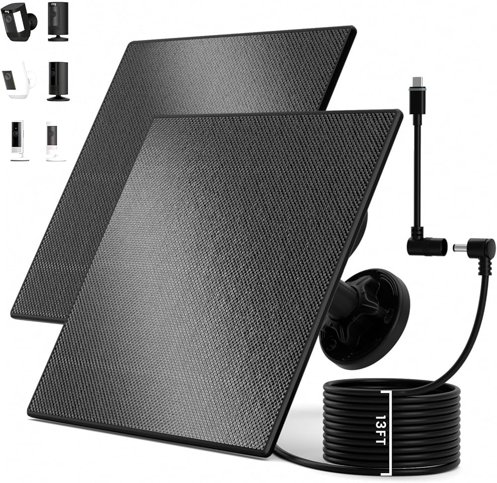 قطعتان من الألواح الشمسية بقدرة 5 وات للكاميرا الحلقية - متوافقة مع كاميرا Spotlight (Plus/Pro/البطارية)، وكاميرا Stick Up Cam/Pro وبطارية Stick Up Cam الجديدة كليًا، وكابل بطول 13 قدمًا، ومحول USB-C، ومقاومة للماء in Kuwait