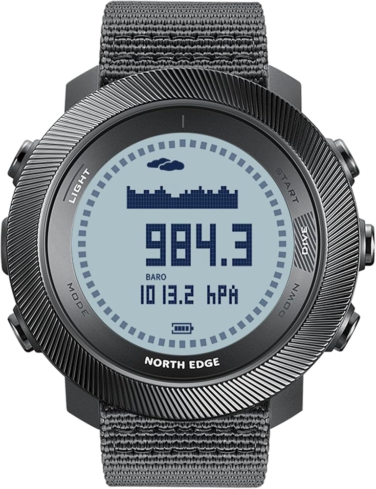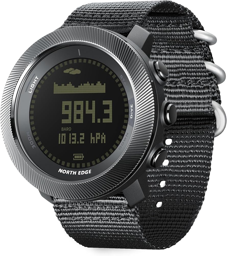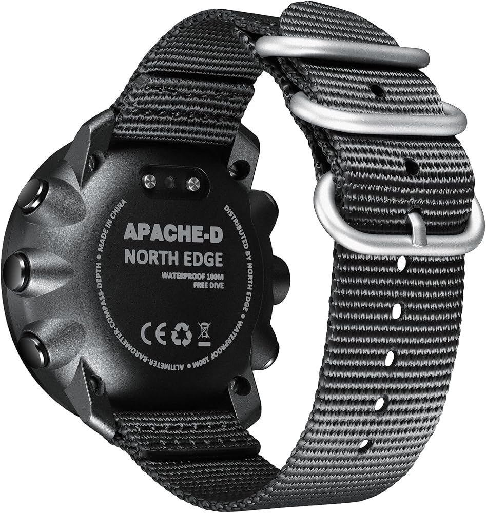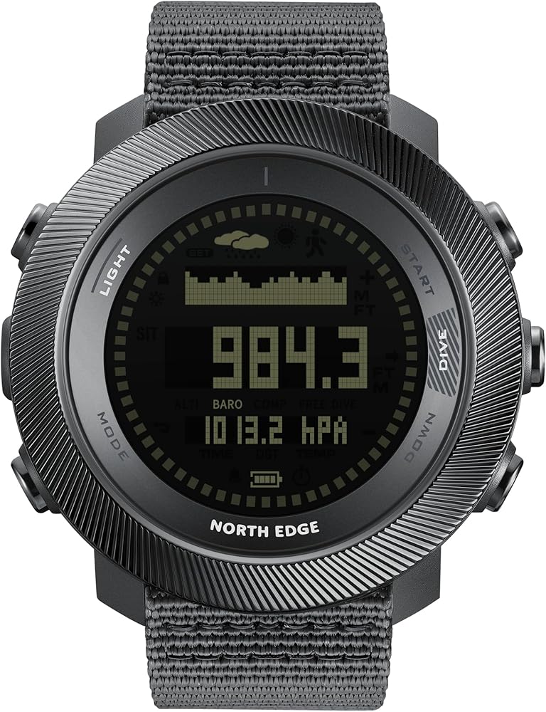Dive deep and push limits with the NORTH EDGE APACHE D, a tactical-grade digital dive watch engineered for free divers and adventure enthusiasts. With precision sensors for altitude, barometric pressure, and compass direction, it seamlessly transitions from underwater depths to mountain summits. The APACHE D's professional diving mode records real-time metrics — including dive depth, time, and water temperature — and stores up to 200 dive logs for post-dive review. Whether you're exploring the sea or tracking steps on land, its multi-sport capabilities and rugged 10ATM waterproof construction guarantee unmatched performance. The watch features a bright EL backlight for clear night visibility, a vibration alert system for safety notifications, and a rechargeable magnetic battery system to keep you powered wherever your mission leads. Built for reliability, precision, and style — the APACHE D is your ultimate outdoor companion.