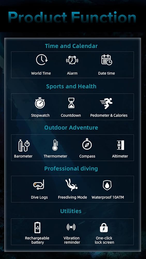 Designed for Recreational Diving & Outdoor Activities.Built for snorkeling, recreational freediving, spearfishing and outdoor adventures. Ideal for hobby-level water sports and daily outdoor use. Not intended to replace professional dive computers for technical or deep scuba diving.
