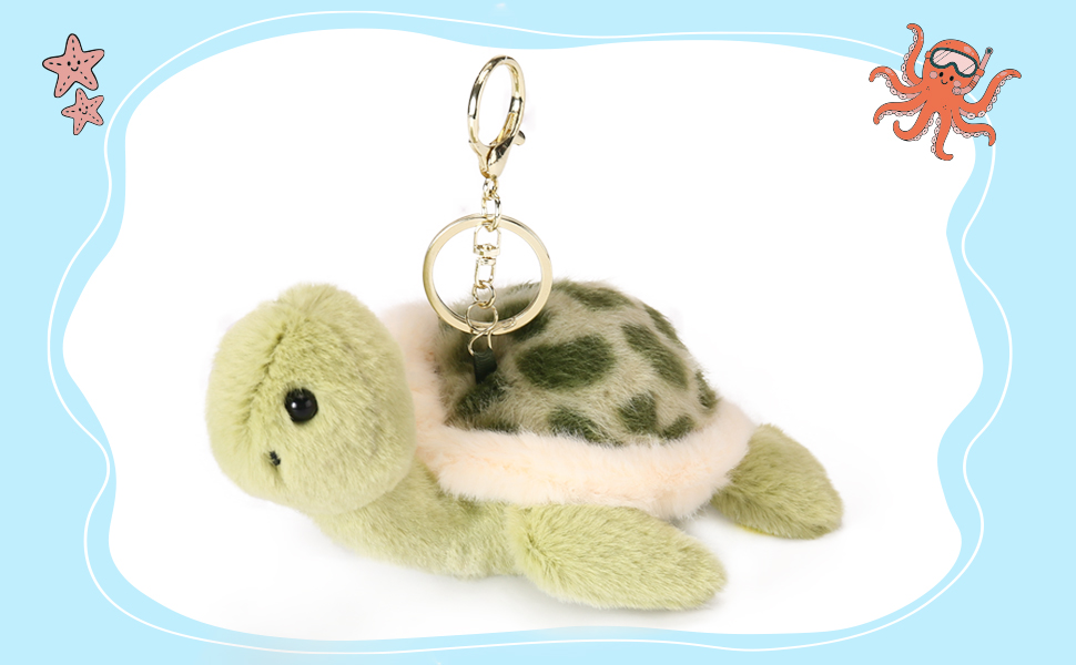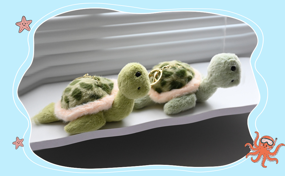 - سلسلة مفاتيح قطيفة لطيفة: سلسلة المفاتيح القطيفة على شكل سلحفاة البحر هي إكسسوار لطيف لا يقاوم وتضيف لمسة ممتعة وغريبة إلى أغراضك اليومية