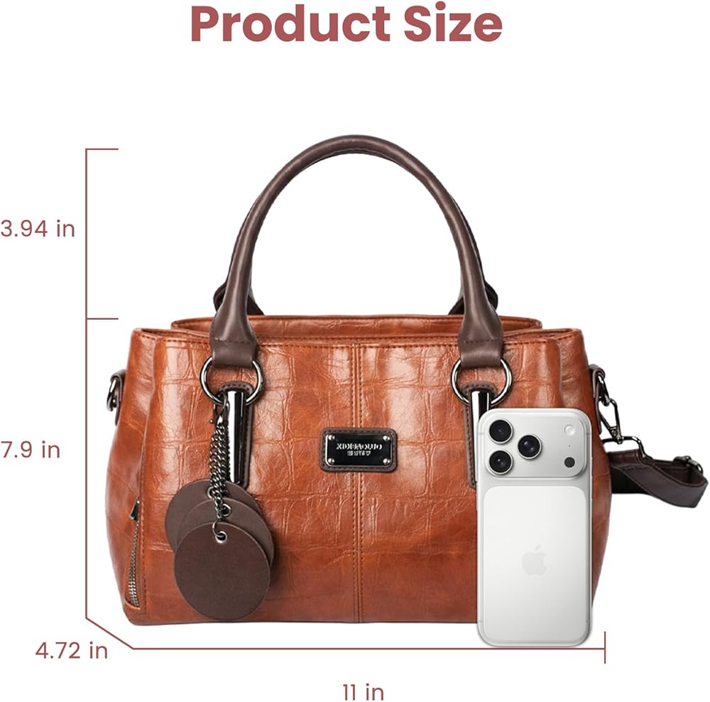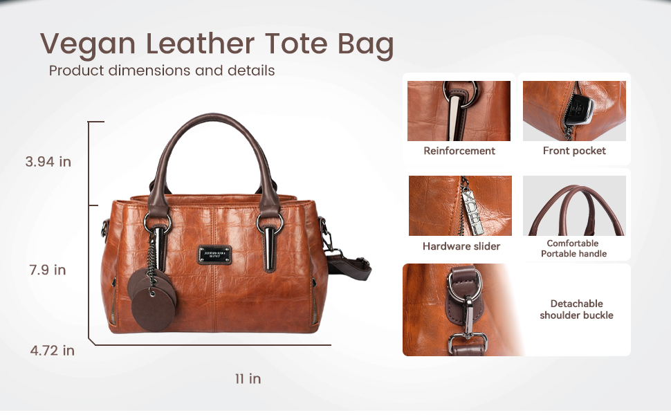 • 【تخزين كبير】تبلغ حقيبة اليد النسائية المصنوعة من الجلد النباتي 11 بوصة (طول) × 4.72 بوصة (عرض) × 7.9 بوصة (ارتفاع). مقاس حزام الكتف: 27 بوصة - 47 بوصة. الوزن: 1.98 رطل. تأتي مع حزام كتف واحد قابل للتعديل والفصل، مما يسمح باستخدامها كحقيبة كروس أو حقيبة كتف.