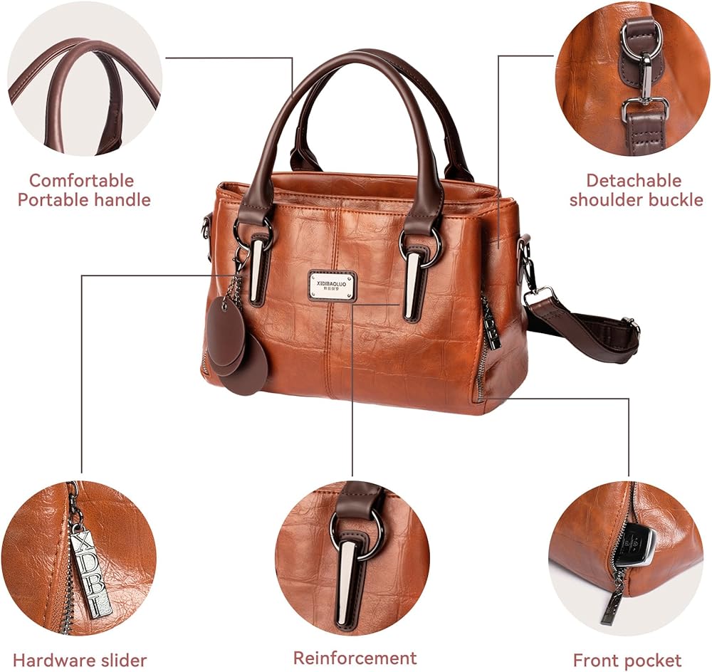• 【مواد ممتازة】حقيبة الكتف هذه مصنوعة من جلد البولي يوريثان الفاخر مع لمسة نهائية منقوشة، مما يؤدي إلى ملمس ناعم ومقاومة للتشوه والمتانة. إنها سهلة التنظيف؛ ببساطة امسحها بالماء لإبقائها تبدو جديدة.
