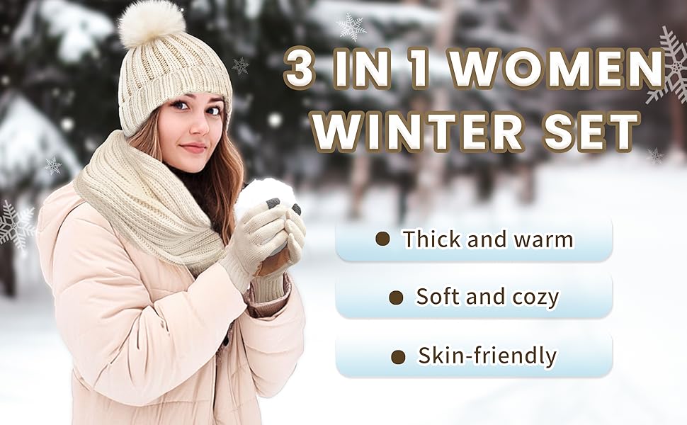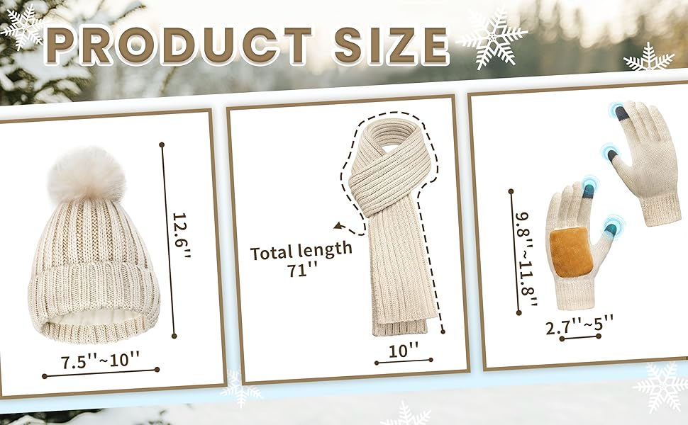تشتمل مجموعة الشتاء 3 في 1 على قفازات ووشاح وقبعة صغيرة، مصنوعة بالكامل من الأكريليك الفاخر والذي يُسمى أيضًا الصوف الصناعي، لا يوفر فقط الدفء والنعومة الرائعين في الشتاء البارد، ولكن ليس من السهل ارتداؤه وتشويه عند غسله يدويًا أو في الغسالة.