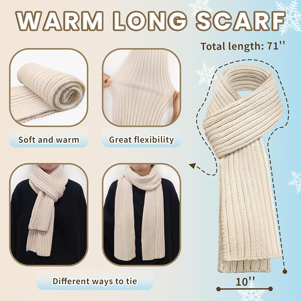 وشاح محبوك سميك وواسع، يبلغ طوله 71 بوصة، ويمنحك الطول الكبير العديد من الطرق الممكنة للالتفاف ليناسب ملابسك الشتوية. هدايا رائعة حقًا لعطلة عيد الميلاد في الشتاء.