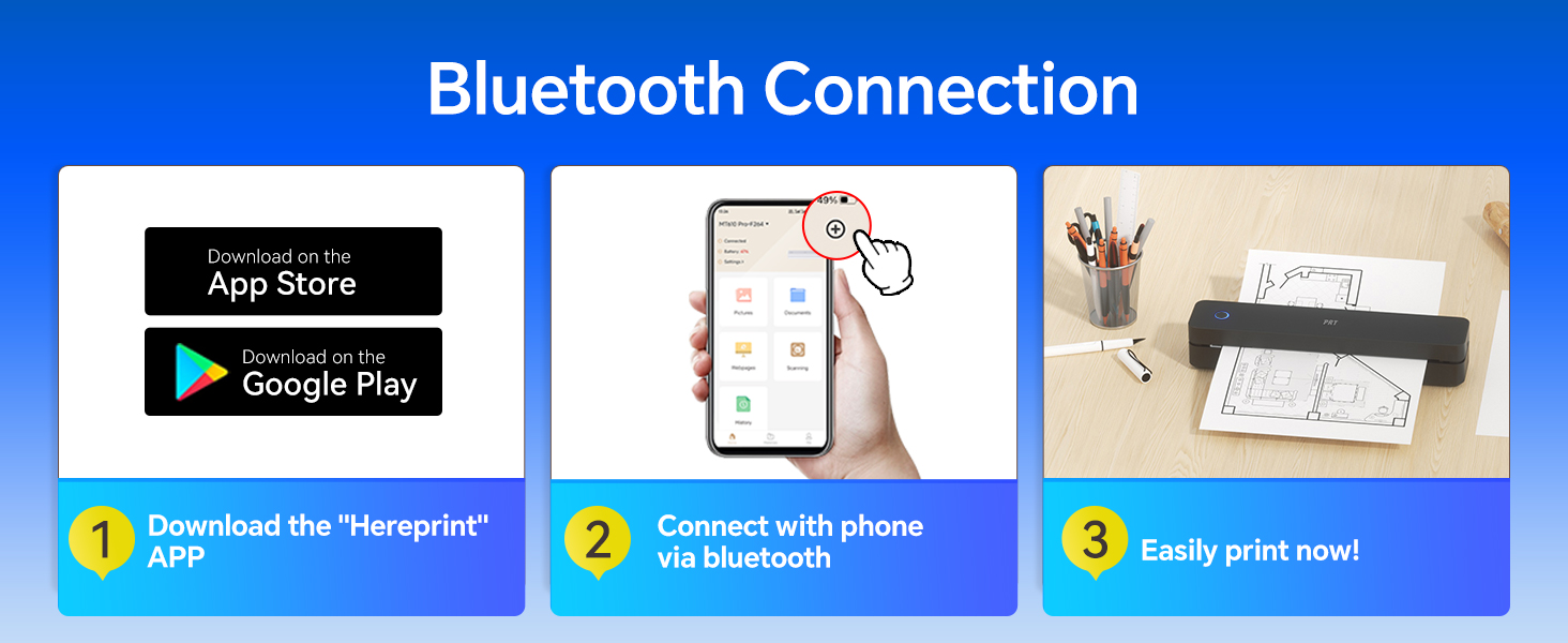 اتصال متعدد سلس: تقترن هذه الطابعة المحمولة بسهولة مع الأجهزة الذكية. قم بالاتصال عبر البلوتوث بهواتف iOS أو Android/الأجهزة اللوحية في ثوانٍ. لاستخدام الكمبيوتر، ما عليك سوى توصيل كابل USB المرفق وتثبيت برنامج التشغيل - وهو ثابت وجاهز للانطلاق